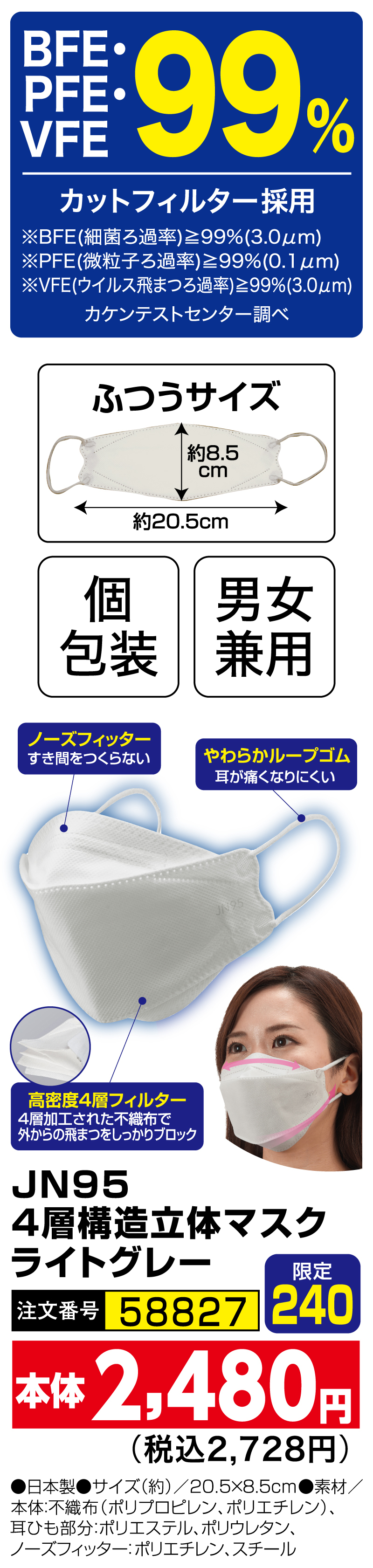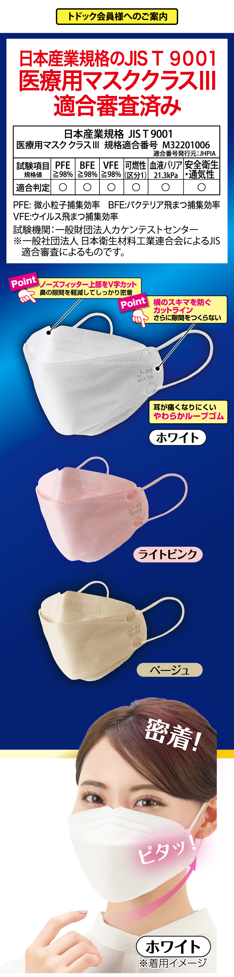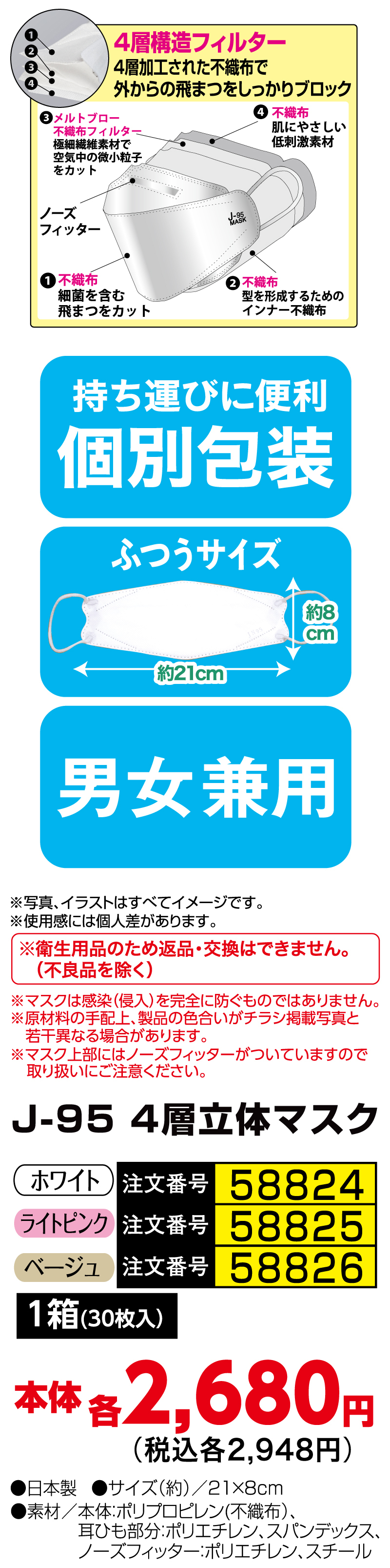 J-95 4層構造フィルター医療用立体マスク
