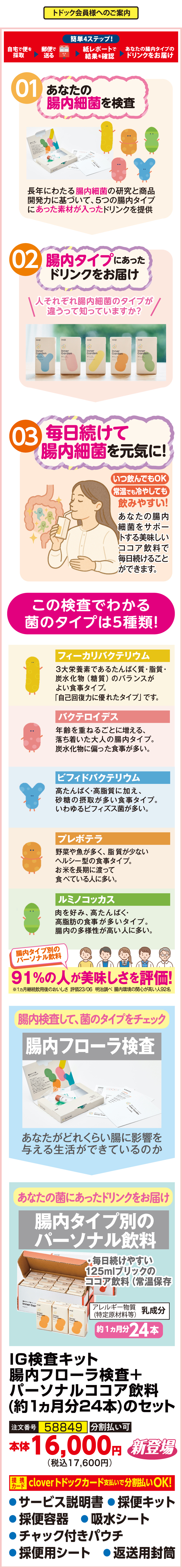 IG検査キット腸内フローラ検査+パーソナルココア飲料(約1ヶ月分24本)のセット