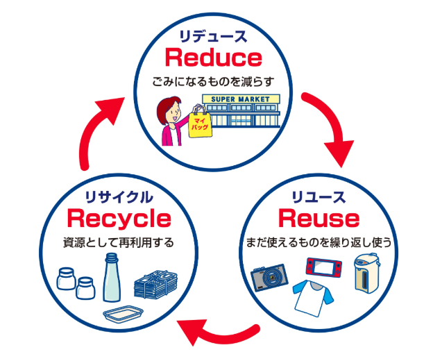廃棄物の扱いに関する、Rを頭文字とする3つの取組をまとめて「3R」といいます。