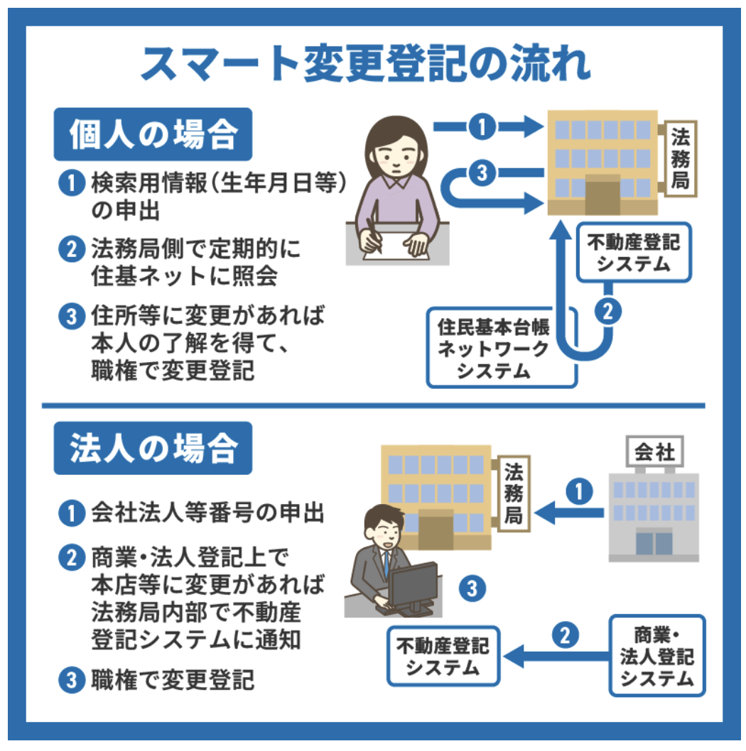 2、登記が済んでいるかたへ、住所等変更登記の義務化と便利なスマート変更登記