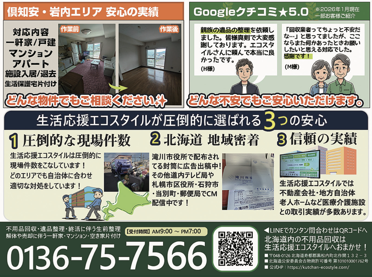 不用品回収・遺品整理・岩内・ 倶知安 生活応援エコスタイル